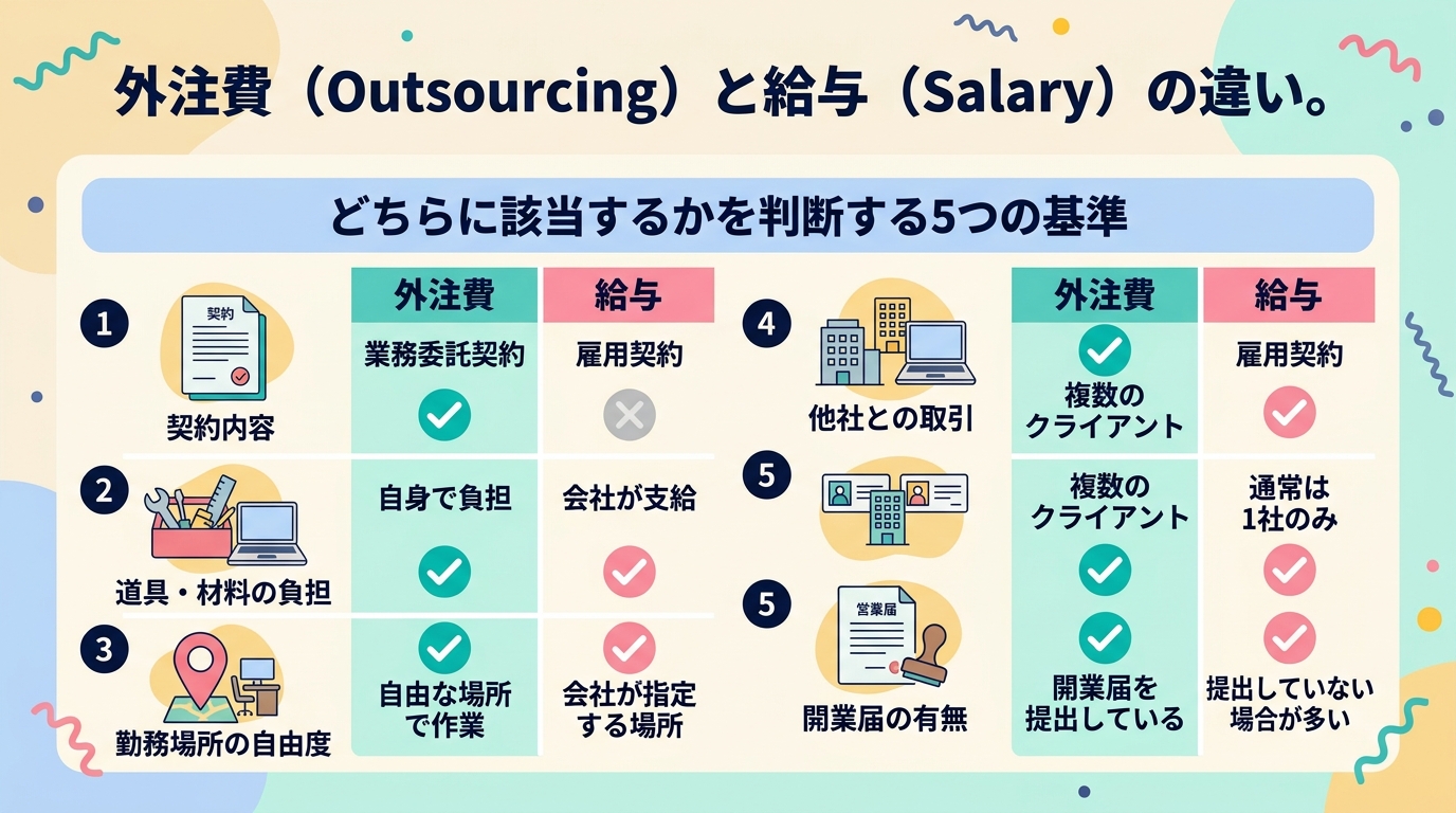 - 外注費と給与を区分する国税庁の5つの判断基準